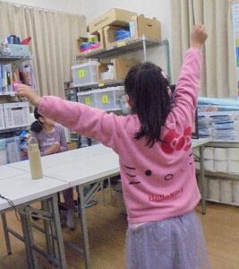 一人一人キャラクターを設定し、4人で順番に交代しながらゲームを進めていきました。初めて参加した新1年生も、上級生にやり方を教えてもらい、途中からは自立でできるようになりました。ストライクやスペアが出て大喜び。お互いのナイスプレイを拍手や歓声で盛り上げました。なんと、ビギナーズラックで1年生の利用児さんが優勝しました!!