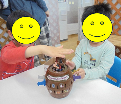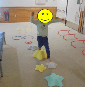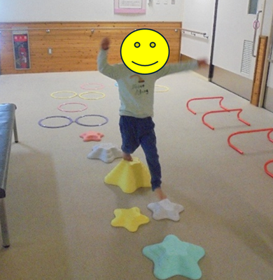 今回一緒になったお友達は、年長さん同士。普段行っているゲーム遊びやサーキット遊びを一緒に行いました。ゲーム遊びでは相手が変わっても、写真入りの手順書を見ながら進めていき、上手に順番交代ができました。また、サーキット遊びでは、他児の様子をモデルに元気に体を動かすことができました。活動の相手が変わることで、相手の様子をよく観察したり、相手に合わそうとする行動が見られたり。また、新鮮さもあり、気づけば笑顔になっていたりしました。