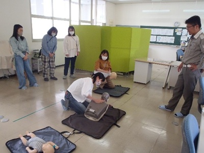 5月26日、放課後クラブぴあ/療育ルームいろはの職員がぴあ・いろはプラスと合同で、消防署の救命救急士さんの指導のもと、救命救急講習を行いました。今回の講習では、異物の誤嚥・窒息の対処法を学びました。