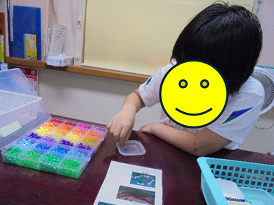 放課後クラブぴあ・療育ルームいろはでは、ビーズを使ってブレスレット作りを行いました。自立課題として、積み木、チップ、コイン、ビーズなど指先を使う教材を使用しています。