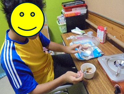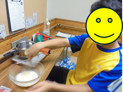 今回は、プリン作りをしました。箱の裏面を見ながらの調理に初挑戦。補足説明を口頭でしながらすすめました。パッケージに書かれてある手順書を見ながら調理ができるようになると、調理できるメニューの幅が広がります。今は、ヘルプの出せる環境で、一緒に確認しながら進め、今後少しずつ慣れていけたらいいなと思います。