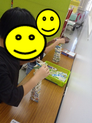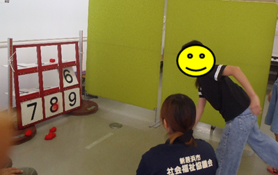 ゲームは上部児童センターの児童厚生員さんと高校生ボランティアのご協力で、金魚すくい、ストラックアウト、おこのみやキング、射的、牛乳パックつむつむの5つのコーナーをおこないました。