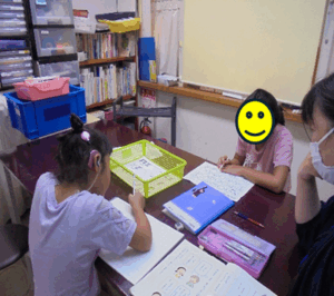 夏休みも残すところわずかとなりました。放課後クラブぴあでは、残った宿題をがんばるべく、宿題会をしました。プリントや自主勉強ノート、読書感想文などを持ち寄り、時間や量を決め取り組みました。難しいところは職員と一緒に考えたり、手伝ってもらったりしながら、各自が目標の時間や量を達成しました。
