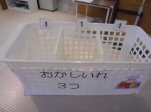本当はもっとお菓子がほしいお子さんもいましたが、構造的に3個しか入らないので、気持ちの切り替えをして3個選んでお家に持って帰りました。「これはお父さんにあげる」と、家族に分けてあげようとしているお子さんもおり、ほほえましかったです。