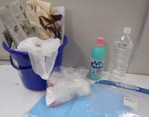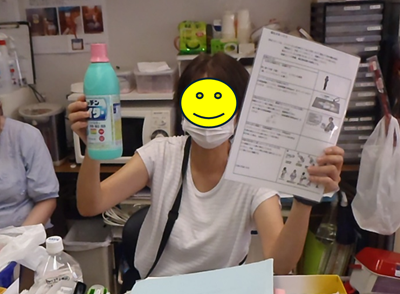今回は特に、嘔吐処理の対応について、看護師資格を持つ職員から報告を受けました。処理セットの保管場所や、道具の使い方、職員の立ち回り方など、実際をイメージしながら確認をしました。