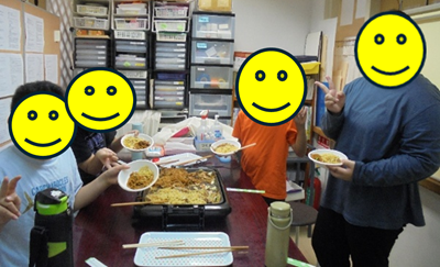 普段、個別に行っている買い物実習や手順書を見ながらの調理が生かされ、小集団になっても身についたスキルが発揮できているなあと思いました。また、年齢の近いもの同士、グループで達成感や喜びを一緒に感じ、子どもたちの顔がとても満足そうでした。