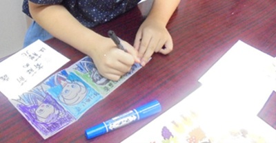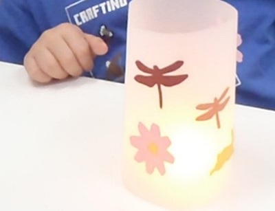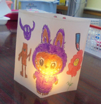 放課後クラブぴあ/療育ルームいろはの9月の行事はランプシェードづくりをしました。子どもたちの年齢や得意とすることに応じて、うさぎやとんぼなどの型紙をのりで貼ったり、写し絵をしたり、手描きをしてすてきなランプシェードができあがりました。