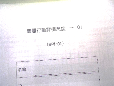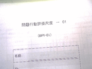問題行動尺度では、気になる行動のある利用児さんについて、自傷行動、常同行動、攻撃/破壊的行動の項目をチェックしてみました。気になる行動の中から、できることを探し、新しい適切な活動をグループで発想してみました。
