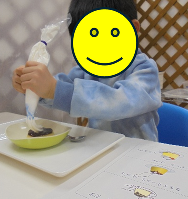 いろはのお子さんは、プリンアラモードを作りました。手順書を使い、お子さんの年齢に合わせて自分でできる工程に挑戦しました。年長児さんはプリンをひっくり返して容器のツノを折ってお皿に上手に盛りつけていました。お好みでクリームやチョコスプレーをかけて完成♡♡みんな美味しくいただきました。