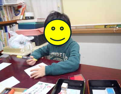 年末最後の開所日に、年賀状作りをしました。ポスカでイラストを描いたり、お正月らしい鏡餅や絵馬などのスタンプを押したり、あいさつ文を書いたりしました。お子さんたちの自由な発想に感心するとともに、個性的なイラストに「かわいいね~」「いいよ〜」とお互い褒め合いながら進めていきました。みんなのイチオシの年賀状を1枚チョイスしてもらって写真を撮らせてもらいました。